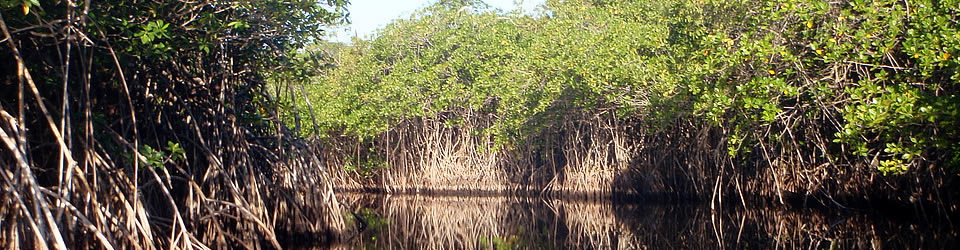 Species coloring is held consistent in the displays: The red mangrove (Rhizophora mangle) is shown in red, the black mangrove (Avicennia germinans) is depicted in black and the white mangrove (Laguncularia racemosa) displays in green, respectively.